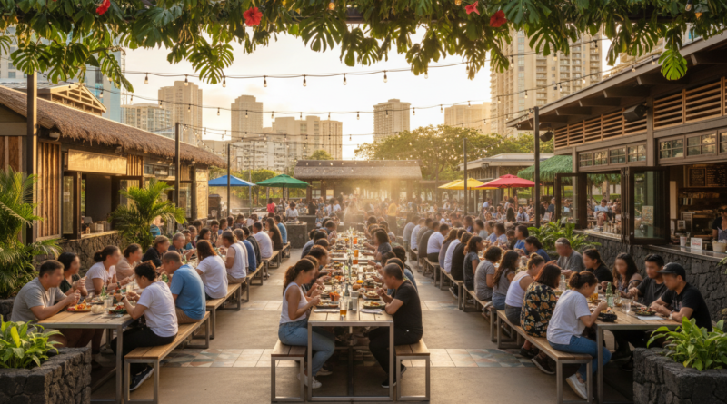 The sleek new food hall at The Park on Ke’eaumoku is drawing crowds from across Midtown Honolulu, offering residents of the rapidly densifying neighborhood a communal dining space that feels both sophisticated and local. Since opening its doors, the hall has become an unexpected gathering spot where condo dwellers, office workers, and longtime Kalihi-Palama residents converge over plates of elevated comfort food.