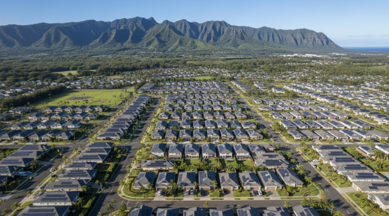 A massive solar-powered residential development is set to transform 600 acres of former Dole plantation land in Central Oahu, promising to become one of Hawaii’s first net-zero energy communities when completed in 2028.